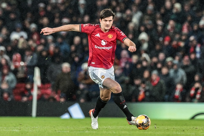 Harry Maguire of Manchester Untied breaks with the ball during the Emirates FA Cup Third Round match Manchester United vs Brighton and Hove Albion at Old Trafford, Manchester, United Kingdom, 11th January 2026, Credit:Mark Cosgrove/News Images / Avalon
