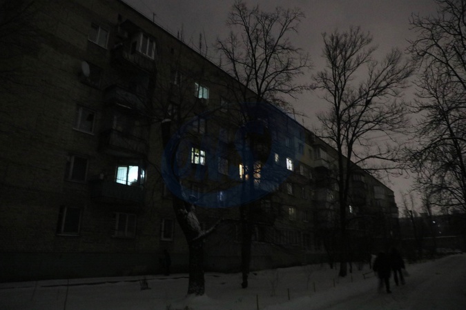 A few windows glow in the dark in a residential building during a power cut caused by a Russian attack, Kyiv, January 9, 2026. On the night of January 9, Russian troops carried out a massive missile and drone attack on the Ukrainian capital, killing four people and leaving a large part of the city without electricity and heat., Credit:Yuliia Ovsiannikova / Avalon