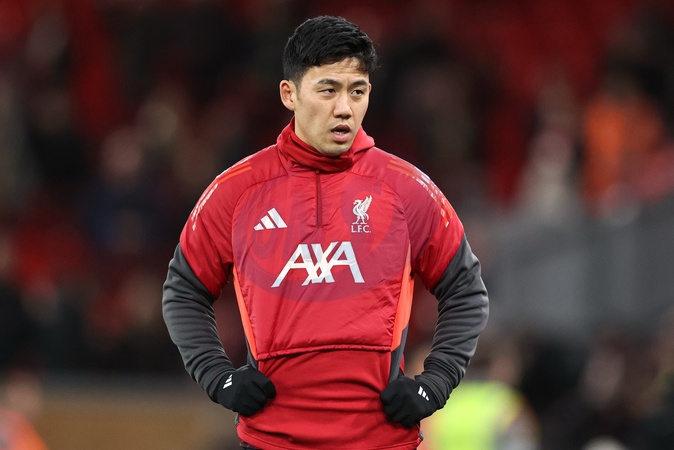 Wataru Endo of Liverpool in the pregame warmup session during the Emirates FA Cup Third Round match Liverpool vs Barnsley at Anfield, Liverpool, United Kingdom, 12th January 2026, Credit:Ae Cosgrove/News Images / Avalon