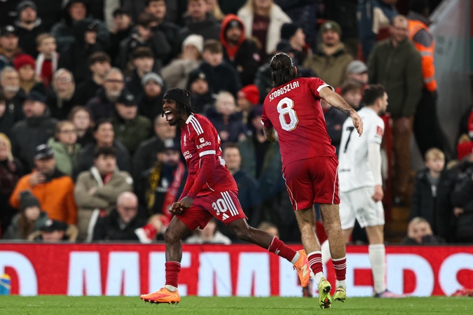Jeremie Frimpong of Liverpool scores to make it 2-0 during the Emirates FA Cup Third Round match Liverpool vs Barnsley at Anfield, Liverpool, United Kingdom, 12th January 2026, Credit:Ae Cosgrove/News Images / Avalon