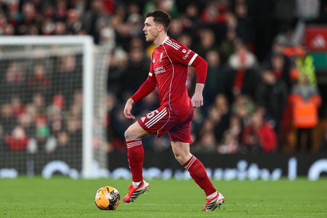 Andrew Robertson of Liverpool with the ball during the Emirates FA Cup Third Round match Liverpool vs Barnsley at Anfield, Liverpool, United Kingdom, 12th January 2026, Credit:Ae Cosgrove/News Images / Avalon