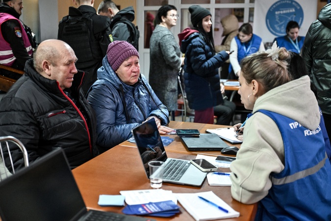 Staff members consult evacuees from frontline communities at a transit center that began operating on November 25, 2025, Zaporizhzhia, Ukraine, on January 5, 2026. The facility functions as a one-stop shop, where evacuees can process documents, open bank accounts, and receive financial, humanitarian, psychological, and legal assistance. Evacuees are able to stay at the center for three to seven days before being relocated to temporary housing in the regional center or to safer parts of Ukraine. The center has already assisted around 1,500 people, Credit:Dmytro Smolienko / Avalon