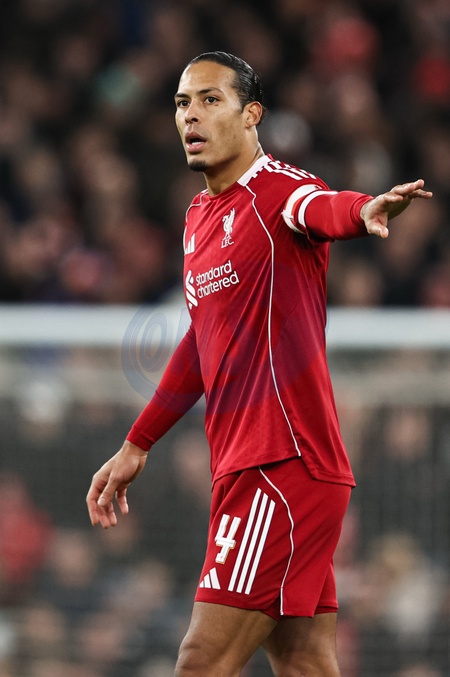 Virgil van Dijk of Liverpool gives his team instructions during the Emirates FA Cup Third Round match Liverpool vs Barnsley at Anfield, Liverpool, United Kingdom, 12th January 2026, Credit:Ae Cosgrove/News Images / Avalon