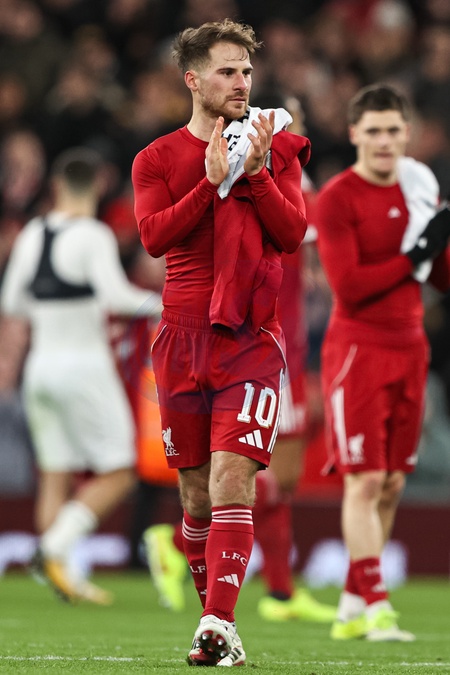 Alexis Mac Allister of Liverpool applauds the fans after the Emirates FA Cup Third Round match Liverpool vs Barnsley at Anfield, Liverpool, United Kingdom, 12th January 2026, Credit:Ae Cosgrove/News Images / Avalon
