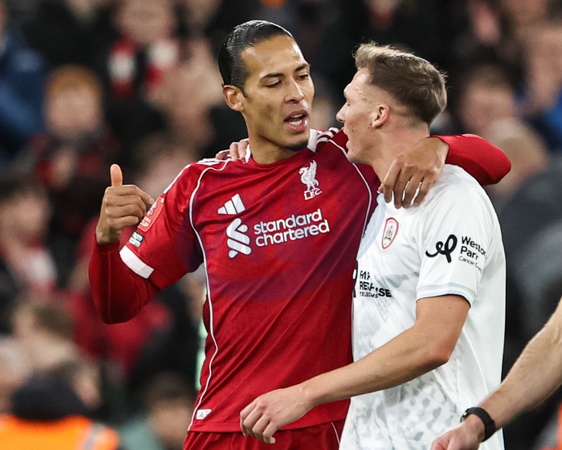 Virgil van Dijk of Liverpool has a chat with Jack Shepherd of Barnsley after the Emirates FA Cup Third Round match Liverpool vs Barnsley at Anfield, Liverpool, United Kingdom, 12th January 2026, Credit:Ae Cosgrove/News Images / Avalon