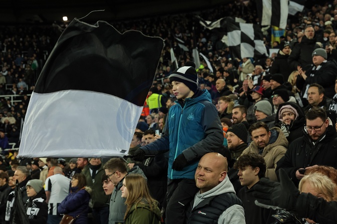 Newcastle Unites fans wave flags during the Carabao Cup Semi-finals First Leg Newcastle United vs Manchester City at St. James's Park, Newcastle, United Kingdom, 13th January 2026, Credit:Mark Cosgrove/News Images / Avalon