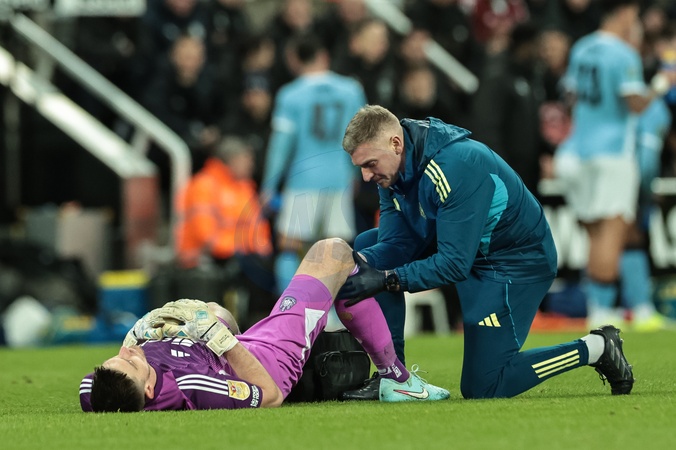 Newcastle Untied goalkeeper Nick Pope receives treatment during the Carabao Cup Semi-finals First Leg Newcastle United vs Manchester City at St. James's Park, Newcastle, United Kingdom, 13th January 2026, Credit:Mark Cosgrove/News Images / Avalon