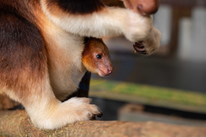 Tree kangaroo joey emerges from his mum's pouch at Chester Zoo