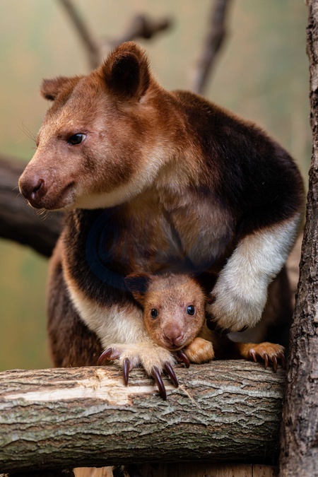 Tree kangaroo joey emerges from his mum's pouch at Chester Zoo