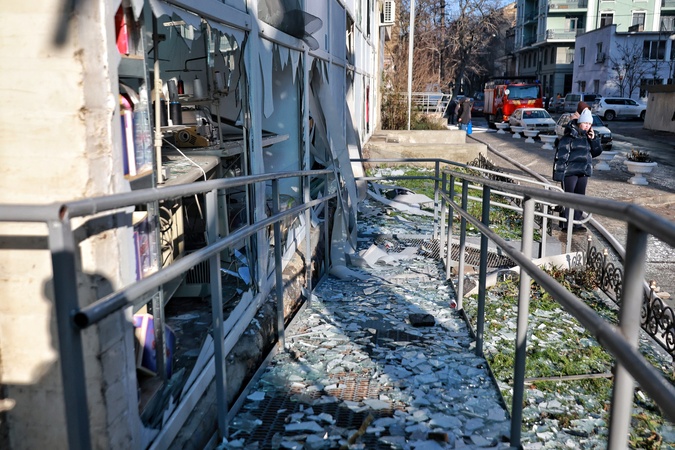 A woman talks on the mobile phone near a ramp covered with debris due to a Russian drone attack, Odesa, Ukraine, January 13, 2026., Credit:Nina Liashonok / Avalon