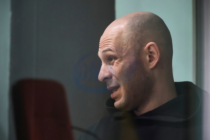 Captured Russian serviceman Sergey Tuzhylov (call sign "Altai”) is kept in a glass-panelled box during a hearing to announce the verdict at the Kholodnohirskyi District Court, Kharkiv, Ukraine, January 13, 2026. The Russian soldier was sentenced to life imprisonment for his role in the execution of Ukrainian prisoners of war during Russia's renewed offensive in Kharkiv region in 2024., Credit:Viacheslav Madiievskyi / Avalon