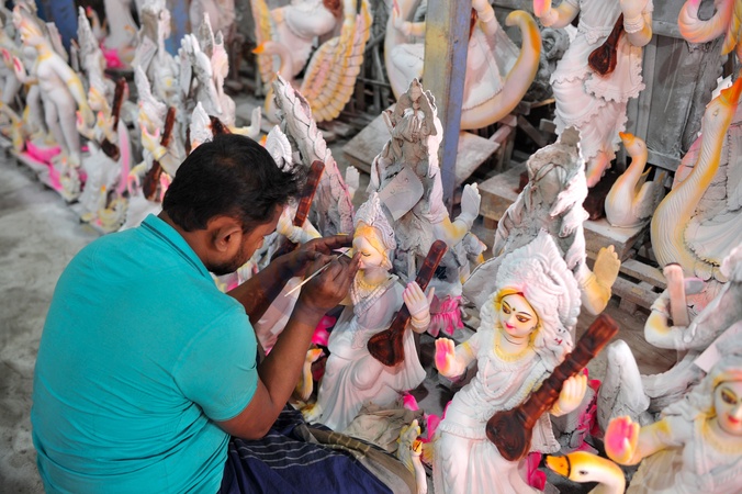 Chattogram, Bangladesh- Idol artists remain busy painting idols of Goddess Saraswati as preparations intensify ahead of Saraswati Puja, which will be celebrated across Bangladesh on 23 January., Credit:Md Rafayat Haque Khan / Avalon
