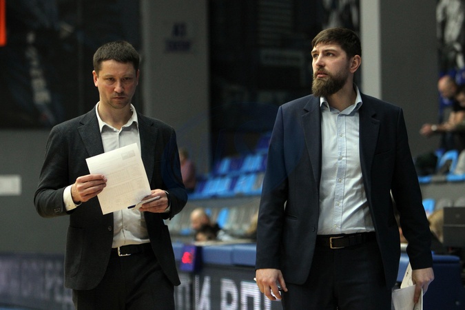 Head coach of BC Kyiv Basket Dmytro Zabirchenko (L) stays on the sideline during the 2025/2026 Ukrainian Basketball SuperLeague Round 9 match against BC Cherkaski Mavpy (Cherkasy Monkeys) at the Shynnyk Culture and Sports Complex, Dnipro, Ukraine, January 10, 2026., Credit:Mykola Miakshykov / Avalon