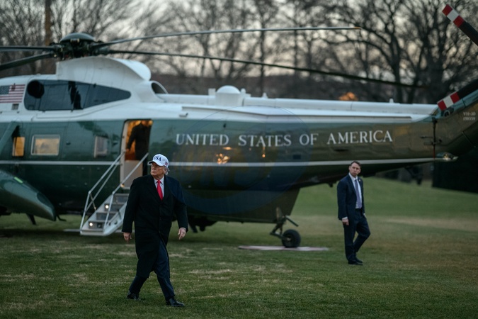 President Donald Trump disembarks Marine One on the South Lawn of the White House