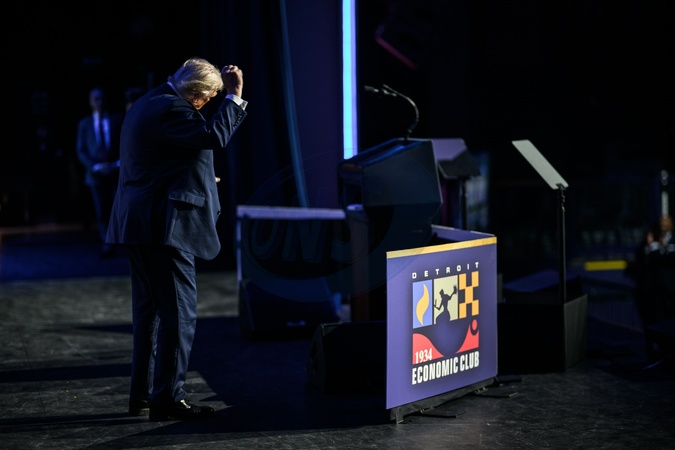 President Donald Trump gestures to the crowd after delivering remarks to the Detroit Economic Club, Tuesday, January 13, 2026, at the MotorCity Casino Hotel in Detroit, Michigan., Credit:Daniel Torok / Avalon