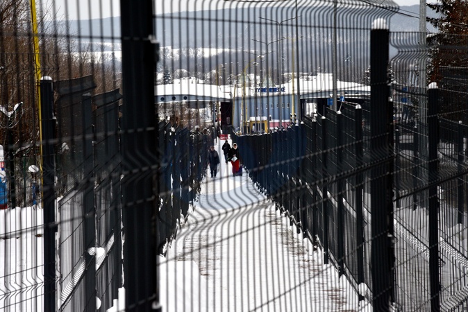 People visit the Uzhhorod-Vysne Nemecke crossing point on the Ukraine-Slovakia border, Zakarpattia region, Ukraine, January 14, 2026. The pedestrian and cyclist crossing was inaugurated following the entry into force of the Protocol between the governments of Ukraine and the Slovak Republic, signed in October 2025. The agreement aims to ease checkpoint congestion and improve citizens' mobility., Credit:Yulii Zozulia / Avalon
