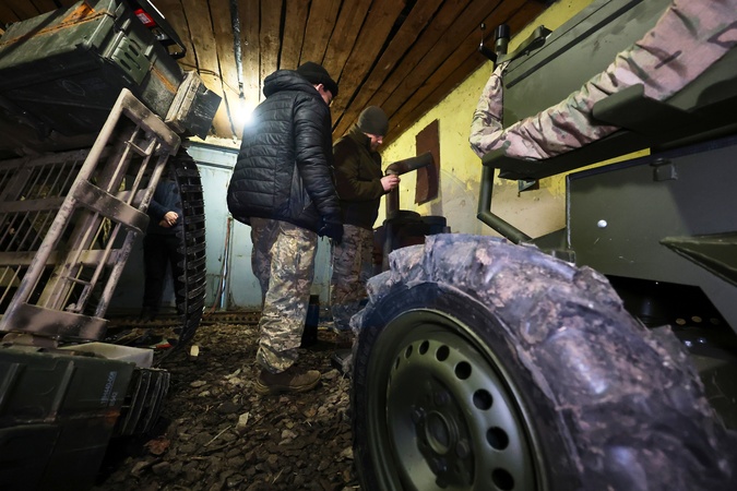 Soldiers from the repair and restoration battalion of the Otaman Kost Hordiienko Motorised Brigade of the Ukrainian Armed Forces prepare an unmanned ground vehicle (UGV) for use in the Vovchansk direction, Ukraine, January 8, 2026., Credit:Viacheslav Madiievskyi / Avalon