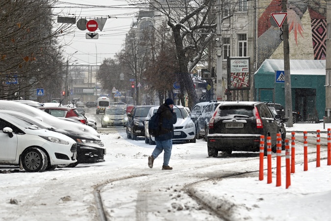 A man crosses a street in the Podilskyi district in winter, Kyiv, Ukraine, January 9, 2026., Credit:EVGEN_KOTENKO / Avalon