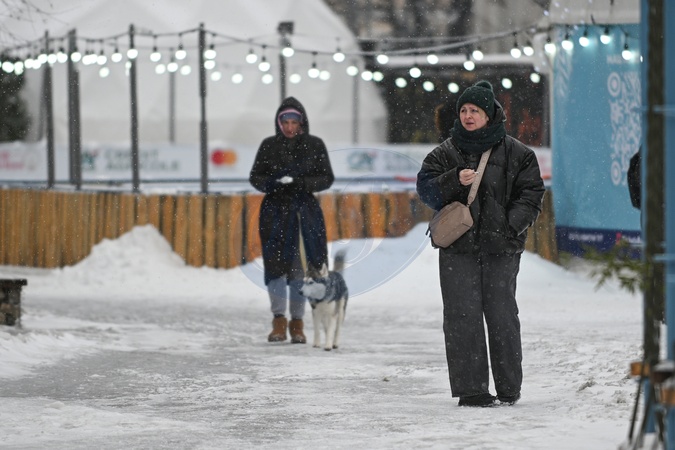 Women walk along Kontraktova Square in the Podilskyi district in winter, Kyiv, Ukraine, January 9, 2026., Credit:EVGEN_KOTENKO / Avalon