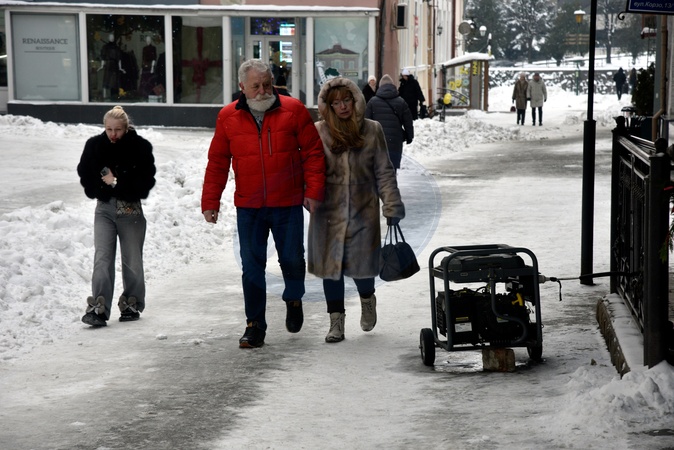 People walk past a generator in one of the central streets, Uzhhorod, Zakarpattia region, Ukraine, January 8, 2026., Credit:IGOR TKACHENKO / Avalon