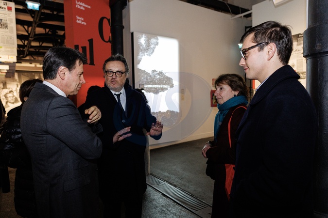 January 14, 2026, Rome, Repubblica 50, Exhibition for the 50th anniversary of La Repubblica, pictured: Giuseppe Conte, Mario Orfeo, Enrica Scalfari, Simone Viola, Credit:Francesco Fotia / Avalon