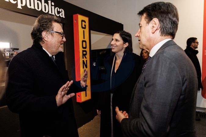 14/01/2026 Rome, Repubblica 50, Exhibition for the 50th anniversary of La Repubblica, in the photo the Secretary of the Democratic Party Elly Schlein and the President of the M5S Giuseppe Conte, Credit:Francesco Fotia / Avalon
