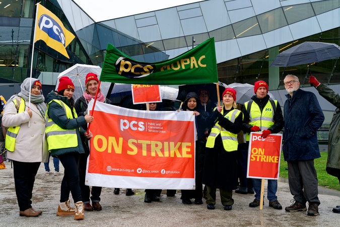 PCS members in Met Police and MOPAC taking strike action outside City Hall. Jeremy Corbyn spoke at the Rally., Credit:Aldo Ciarrocchi / Avalon