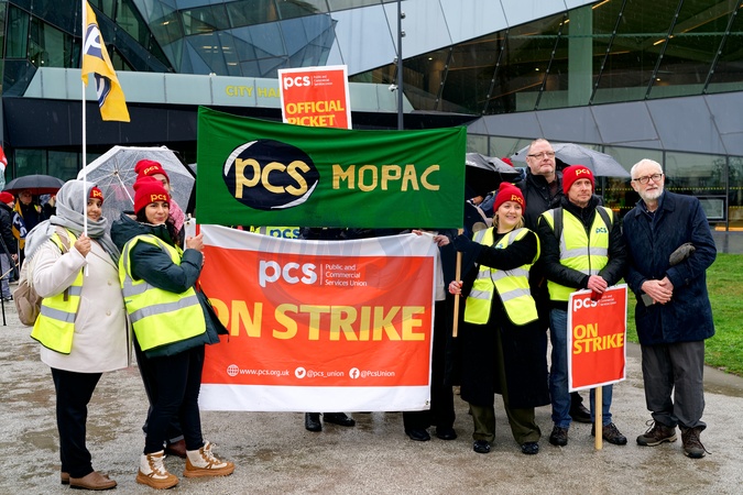 PCS members in Met Police and MOPAC taking strike action outside City Hall. Jeremy Corbyn spoke at the Rally., Credit:Aldo Ciarrocchi / Avalon