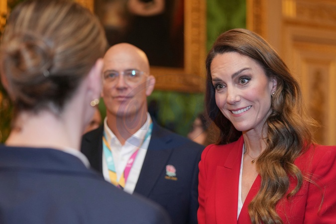 Britain's Kate, Princess of Wales, meets members of the England Women's rugby team, at Windsor Castle, Windsor, England, Thursday, Jan. 15, 2026, the team won the 2025 Women's Rugby World Cup., Credit:Kin Cheung / Avalon