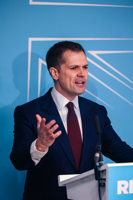 Robert Jenrick MP defects to Reform UK at press conference in London, UK, on 15 January 2026