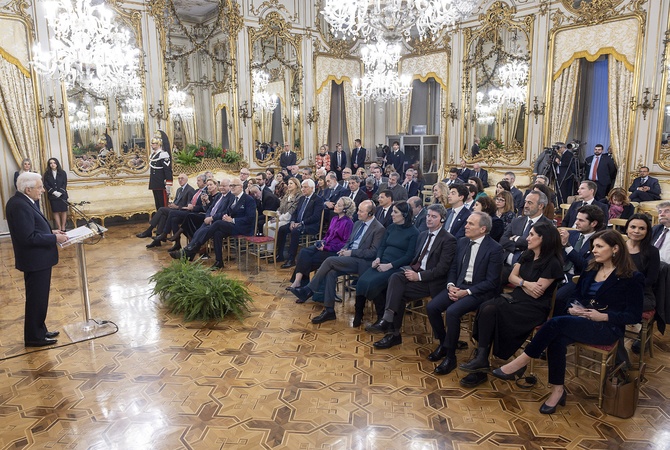 President Sergio Mattarella delivers his welcoming address at the meeting with participants in the 30th anniversary of the Venice Seminar for the British Press. Rome, Italy 15 January 2026, Credit:Paul Giandotti / Avalon