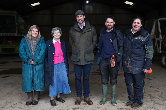15/01/2026. Much Cowarne, UK. The Prince met with John Bowler, his wife Laura, and Founder of We are Farming Minds, Sam Stables, to discuss the importance of supporting farmers with their mental health. The Prince then joined John and his wife Laura as they went about some of their daily tasks on the farm, including pruning the apple trees in the orchard, building new fencing on the border of their land, and feeding the sheep., Credit:Ryan Jenkinson / Kensington Palace / Avalon