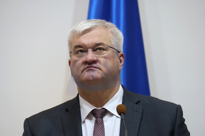 Minister of Foreign Affairs of Ukraine Andrii Sybiha is seen during a joint press conference with his Albanian counterpart Elisa Spiropali following talks on bilateral relations, international cooperation, and a shared path toward EU accession in Kyiv, Ukraine, on January 15, 2026, Credit:Pavlo Bahmut / Avalon