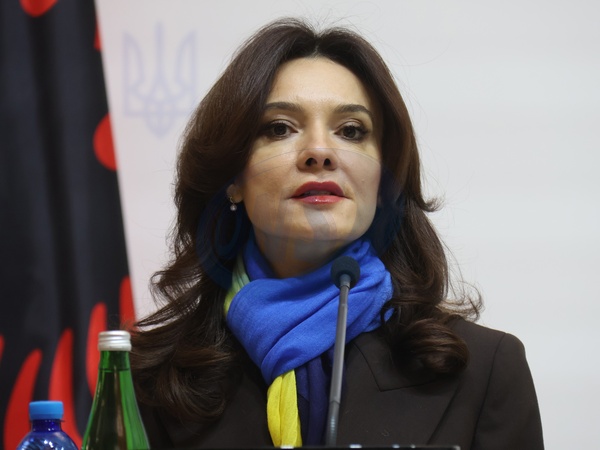 Minister of Foreign Affairs of Albania Elisa Spiropali is seen during a joint press conference with her Ukrainian counterpart Andrii Sybiha following talks on bilateral relations, international cooperation, and a shared path toward EU accession in Kyiv, Ukraine, on January 15, 2026, Credit:Pavlo Bahmut / Avalon
