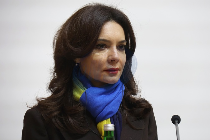 Minister of Foreign Affairs of Albania Elisa Spiropali is seen during a joint press conference with her Ukrainian counterpart Andrii Sybiha following talks on bilateral relations, international cooperation, and a shared path toward EU accession in Kyiv, Ukraine, on January 15, 2026, Credit:Pavlo Bahmut / Avalon