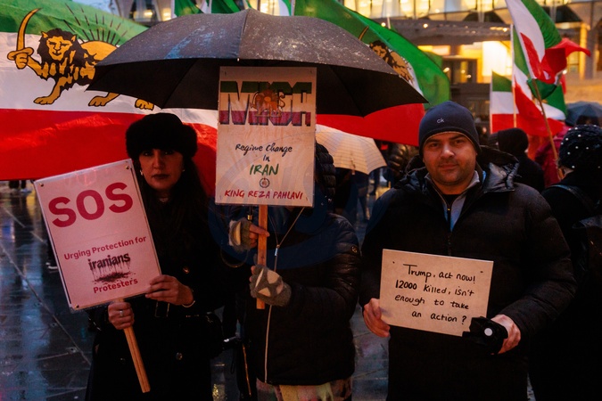 US Embassy, London, UK. 15th January 2026.An emotional crowd gather in front of the American Embassy in London calling for US President Trump to keep his promise to support Iranians in Iran amid reports of mass killings of protesters, despite the communication blackout since the Government cut internet services and phone lines in Iran on the 8th January., Credit:Photo by Amanda Rose / Avalon