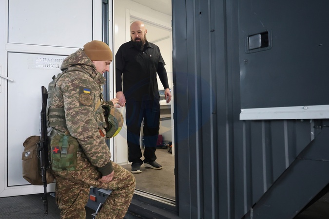 A dentist invites a serviceman into a mobile dental unit in Kharkiv region, Ukraine, on January 15, 2026. The pilot project was launched by the 5th Slobozhanska Brigade with support from the Eastern Kharkiv Territorial Administration and a volunteer community, and is currently being further refined under frontline conditions in the Kharkiv region, Credit:Viacheslav Madiievskyi / Avalon