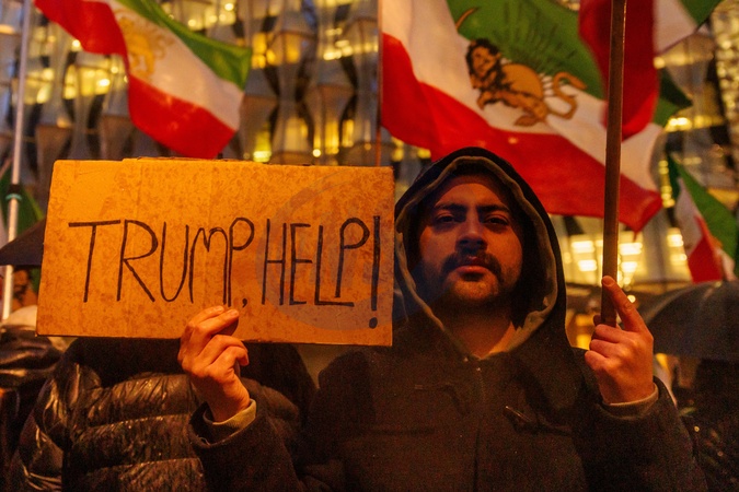 US Embassy, London, UK. 15th January 2026.An emotional crowd gather in front of the American Embassy in London calling for US President Trump to keep his promise to support Iranians in Iran amid reports of mass killings of protesters, despite the communication blackout since the Government cut internet services and phone lines in Iran on the 8th January., Credit:Photo by Amanda Rose / Avalon