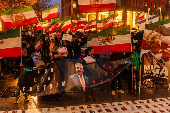 US Embassy, London, UK. 15th January 2026.An emotional crowd gather in front of the American Embassy in London calling for US President Trump to keep his promise to support Iranians in Iran amid reports of mass killings of protesters, despite the communication blackout since the Government cut internet services and phone lines in Iran on the 8th January., Credit:Photo by Amanda Rose / Avalon