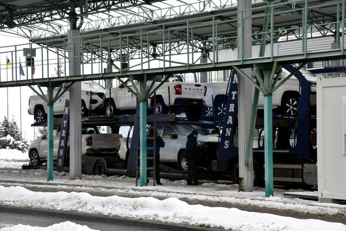 A car carrier truck is seen at the transport terminal of the Uzhhorod border checkpoint on the border with Slovakia in Zakarpattia region, Ukraine, on January 14, 2026, Credit:Yulii Zozulia / Avalon
