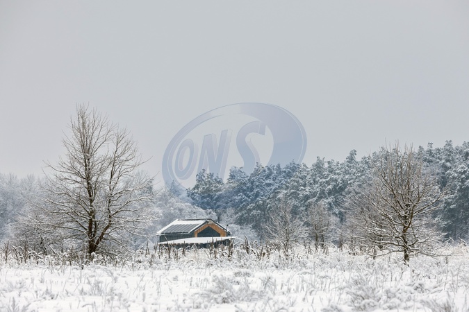 A modular house is seen on the edge of a snow-covered forest in Kyiv region, Ukraine, on January 15, 2026, Credit:Olena Khudiakova / Avalon
