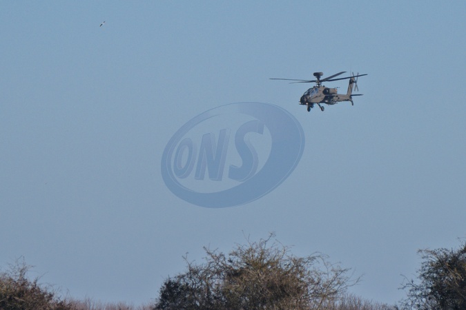 Low flying Apache helicopter near USAF Mildenhall in Cambridgeshire, UK