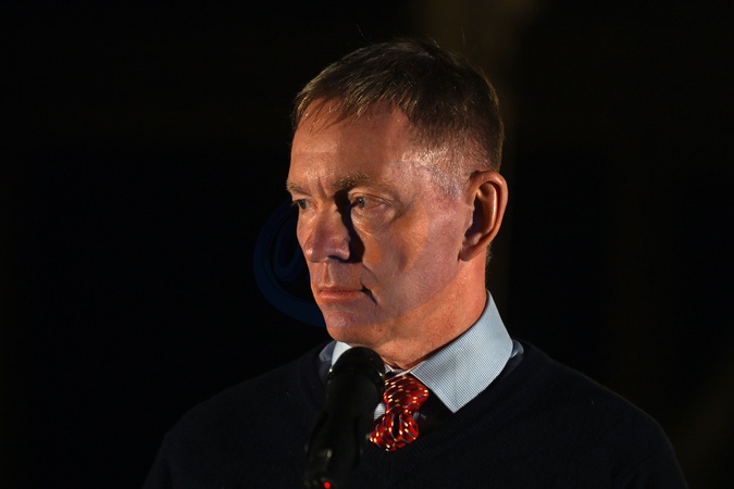 British Labour Party politician Chris Bryant delivers a speech during a symbolic light show in which the Motherland Monument is illuminated with the flags of the United Kingdom and Ukraine, as well as the logo of the Century Partnership, marking the anniversary of the signing of the Century Partnership Agreement between Ukraine and the United Kingdom, Kyiv, Ukraine, on January 15, 2026. The Century Partnership logo symbolizes unity: the sunflower represents Ukraine, the rose England, the daffodil Wales, the thistle Scotland, and flax Northern Ireland, Credit:Yevhen Kotenko / Avalon