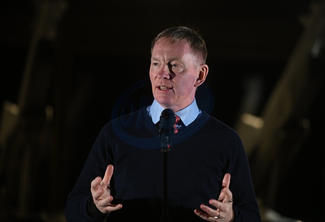 British Labour Party politician Chris Bryant delivers a speech during a symbolic light show in which the Motherland Monument is illuminated with the flags of the United Kingdom and Ukraine, as well as the logo of the Century Partnership, marking the anniversary of the signing of the Century Partnership Agreement between Ukraine and the United Kingdom, Kyiv, Ukraine, on January 15, 2026. The Century Partnership logo symbolizes unity: the sunflower represents Ukraine, the rose England, the daffodil Wales, the thistle Scotland, and flax Northern Ireland, Credit:Yevhen Kotenko / Avalon