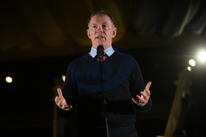 British Labour Party politician Chris Bryant delivers a speech during a symbolic light show in which the Motherland Monument is illuminated with the flags of the United Kingdom and Ukraine, as well as the logo of the Century Partnership, marking the anniversary of the signing of the Century Partnership Agreement between Ukraine and the United Kingdom, Kyiv, Ukraine, on January 15, 2026. The Century Partnership logo symbolizes unity: the sunflower represents Ukraine, the rose England, the daffodil Wales, the thistle Scotland, and flax Northern Ireland, Credit:Yevhen Kotenko / Avalon