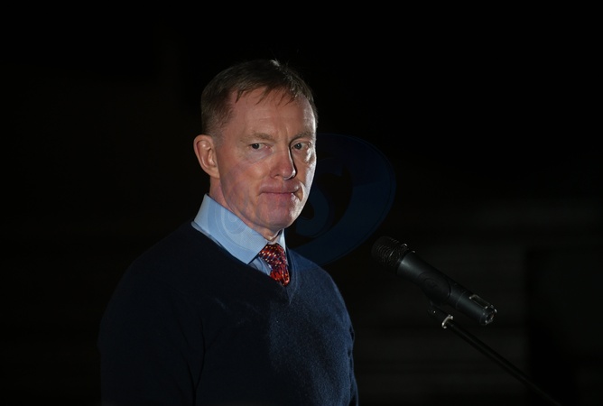 British Labour Party politician Chris Bryant delivers a speech during a symbolic light show in which the Motherland Monument is illuminated with the flags of the United Kingdom and Ukraine, as well as the logo of the Century Partnership, marking the anniversary of the signing of the Century Partnership Agreement between Ukraine and the United Kingdom, Kyiv, Ukraine, on January 15, 2026. The Century Partnership logo symbolizes unity: the sunflower represents Ukraine, the rose England, the daffodil Wales, the thistle Scotland, and flax Northern Ireland, Credit:Yevhen Kotenko / Avalon