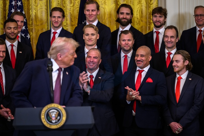President Donald Trump delivers remarks at an event honoring the 2025 Stanley Cup champion Florida Panthers, Thursday, January 15, 2026, in the East Room of the White House., Credit:Molly Riley / Avalon