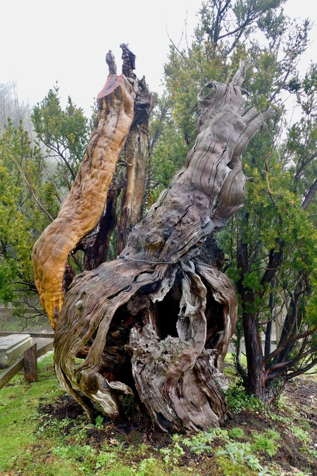 The 1000 year old Aldworth Yew tree which has been struck by lightning and blown over in a storm it is still partly alive.