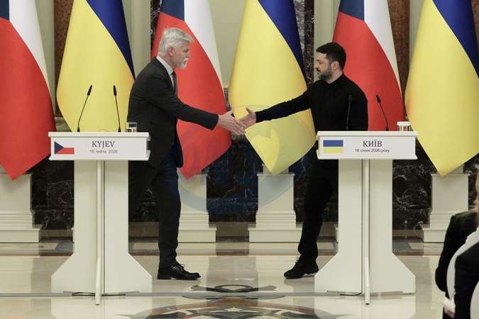 President of Ukraine Volodymyr Zelenskyy (R) shakes hands with President of the Czech Republic Petr Pavel during a joint news conference at the Mariinskyi Palace, Kyiv, Ukraine, on January 16, 2026., Credit:Hennadii Minchenko / Avalon