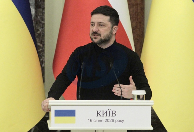 President of Ukraine Volodymyr Zelenskyy attends a joint news conference with President of the Czech Republic Petr Pavel at the Mariinskyi Palace, Kyiv, Ukraine, on January 16, 2026., Credit:Hennadii Minchenko / Avalon